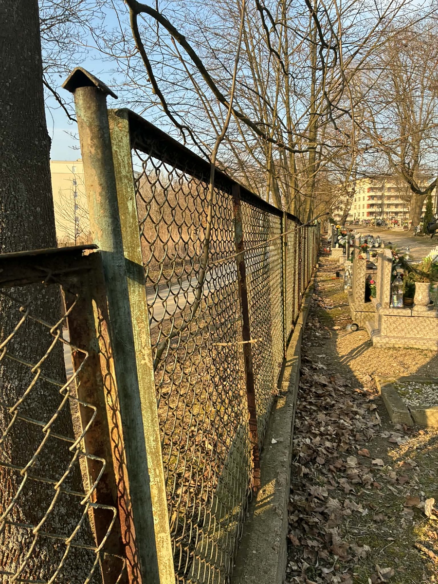 Ogrodzenie pochodzi z ubiegłego wieku, jest zardzewiałe i zniszczone. Okolica się rozbudowała, obecnie cmentarz z każdej strony otaczają osiedla. Jest on zatem widoczny z każdej strony. Bezpośrednio przy jednej stronie ogrodzenia biegnie ruchliwa ścieżka pieszo-rowerowa, którą poruszają się setki osób od osiedla do centrum handlowego i z powrotem. Nowe ogrodzenie poprawi estetykę całej okolicy. Wymiana bramy i furtek stanowi konieczność. Furtki nie posiadają porządnych zamknięć, obecnie są to zardzewiałe skoble, nie są też zamykane na noc. Bramka główna nie otwiera się na całą szerokość. Wymiana ogrodzenia jest koniecznością.