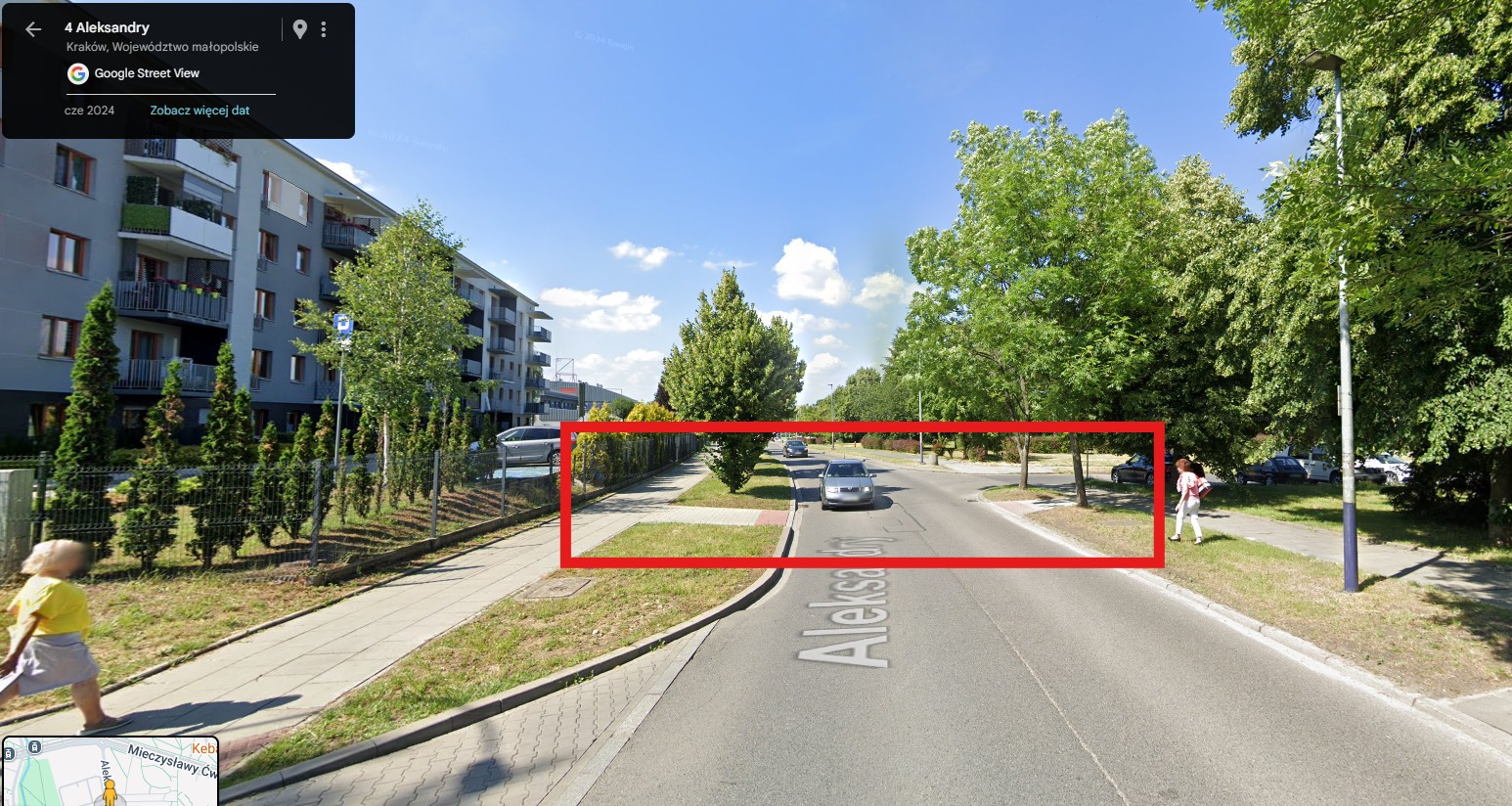 Wykonanie bezpiecznego przejścia dla pieszych na północnej części ul. Aleksandry. W okolicach adresu Aleksandry 3 oraz Aleksandry 4.