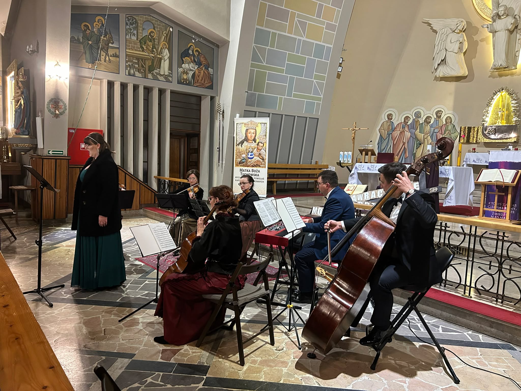Zespół: solistka- śpiewaczka, kwintet smyczkowy: dwoje skrzypiec, altówka, wiolonczela i kontrabas oraz pianista posiadają wyjatkową, autorską formułę koncertu Wielkanocnego o tytule: Stabat Mater- arcydzieła muzyki klasycznej. Podczas koncertu wykonują najbardziej wzruszające fragmenty pasji wg św. Mateusza J.S. Bacha, Stabat Mater G.B. Pergolesiego, utwory G. Faure, G. Cacciniego oraz znane utwory W.A. Mozarta jak słynna lacrimosa czy Ave Verum. Podczas koncertu muzyka przeplatana jest słowem, lektor wprowadza w klimat poszczegónych utworów, opowiada o nich. Całość tworzy wspaniałe widowisko o wysokiej wartości artystycznej.