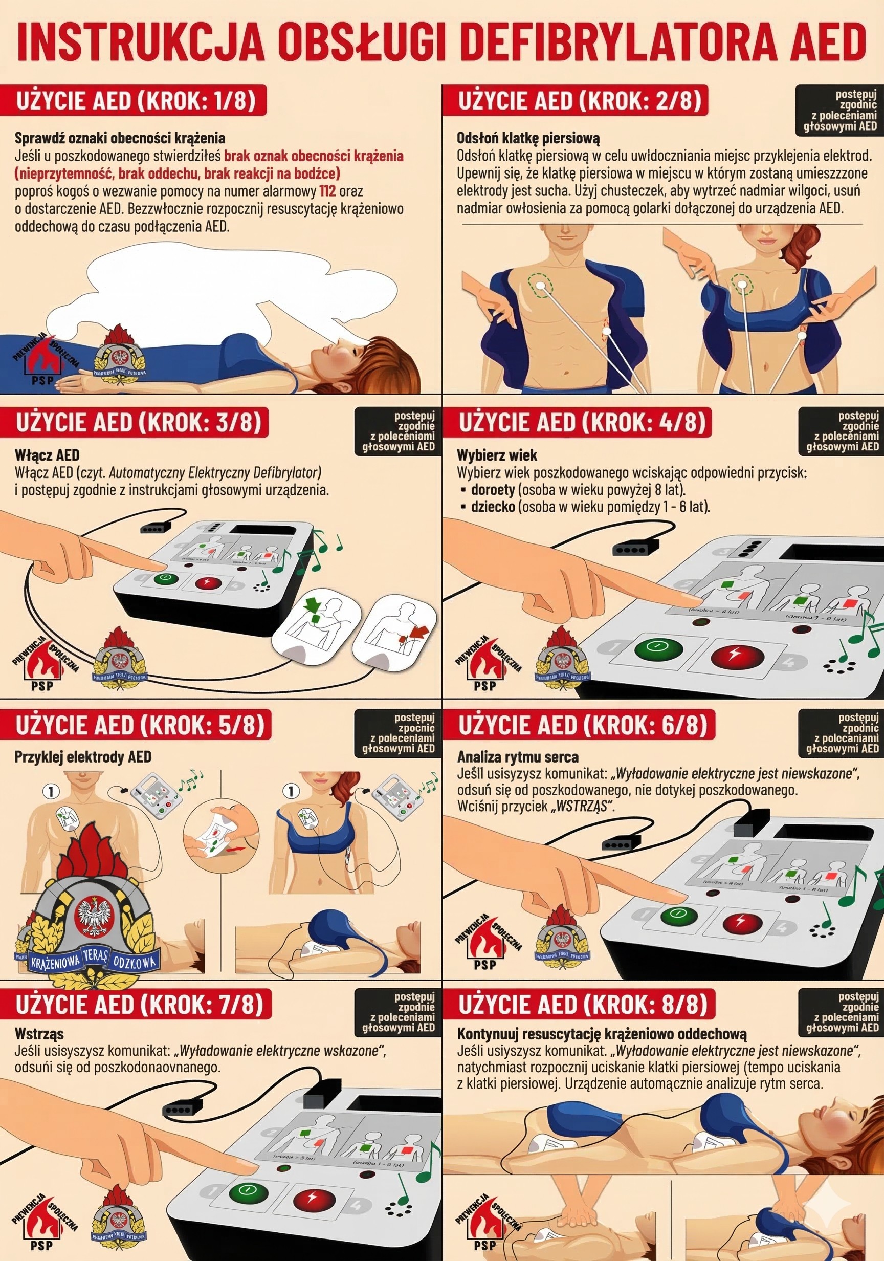Użycie defibrylatora AED w ciągu pierwszych 3-5 minut zwiększa szanse na przeżycie nawet do 70%.