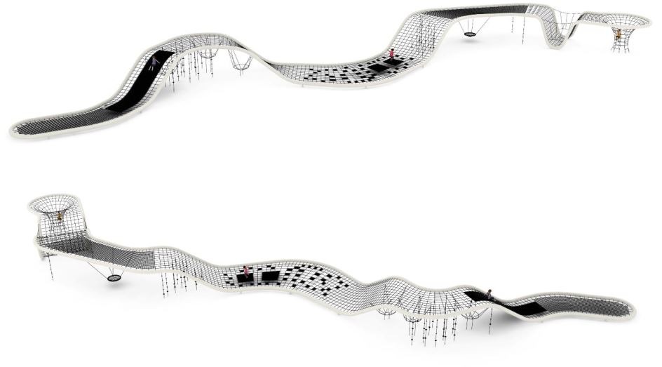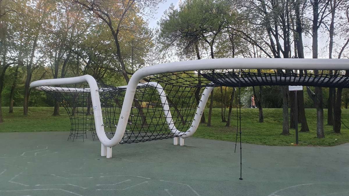 Utworzenie długiego, pofalowanego toru do wspinaczki i balansowania dla dzieci i młodzieży.