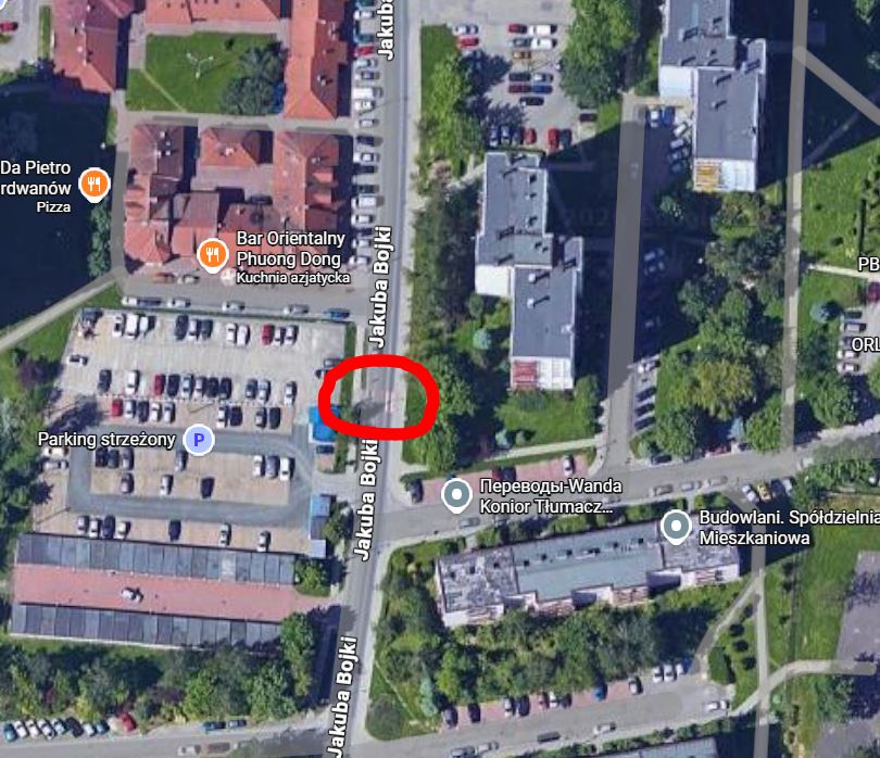 Główna lokalizacja: Środek ulicy Bojki, na wysokości dużego parkingu dla samochodów (50.006775, 19.963826), przejście jest na górce, blisko sklepów. Jest to miejsce gdzie występuje bardzo duże natężenie ruchu samochodów, ponieważ jest to jeden z wyjazdów na Osiedle Kurdwanów. Obok znajdują się sklepy oraz zabudowa wielorodzinna.