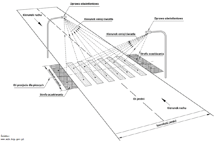 1. Dedykowane doświetlenie przejścia dla pieszych lampami w technologii LED (zmniejszenie zużycia energii, a zarazem lepsza, jakość oświetlenia),