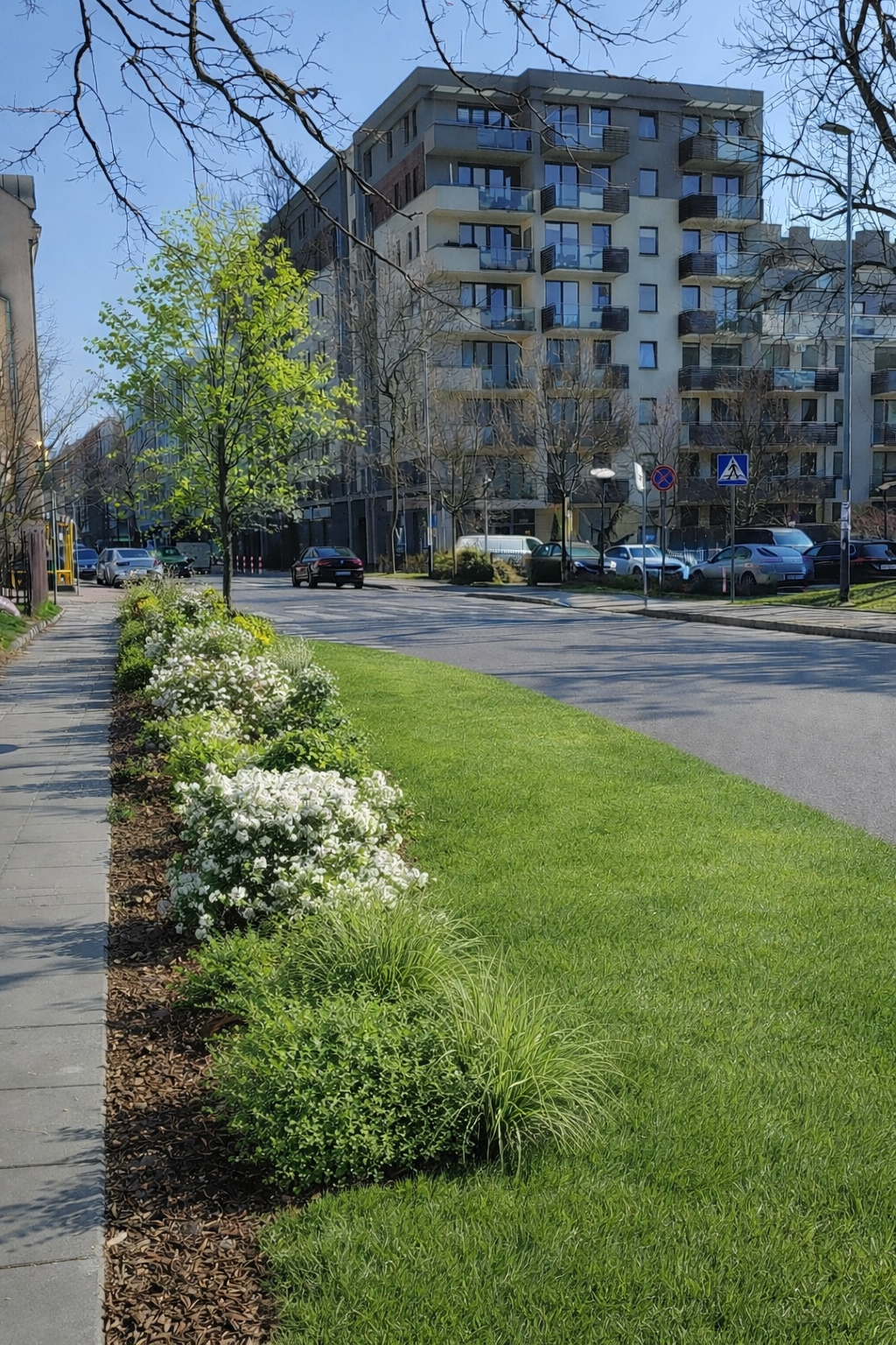 Projekt ten minimalizuje skutki miejskiej wyspy ciepła oraz poprawia estetykę okolicy którą na codzień puruszają się tysiące osób.