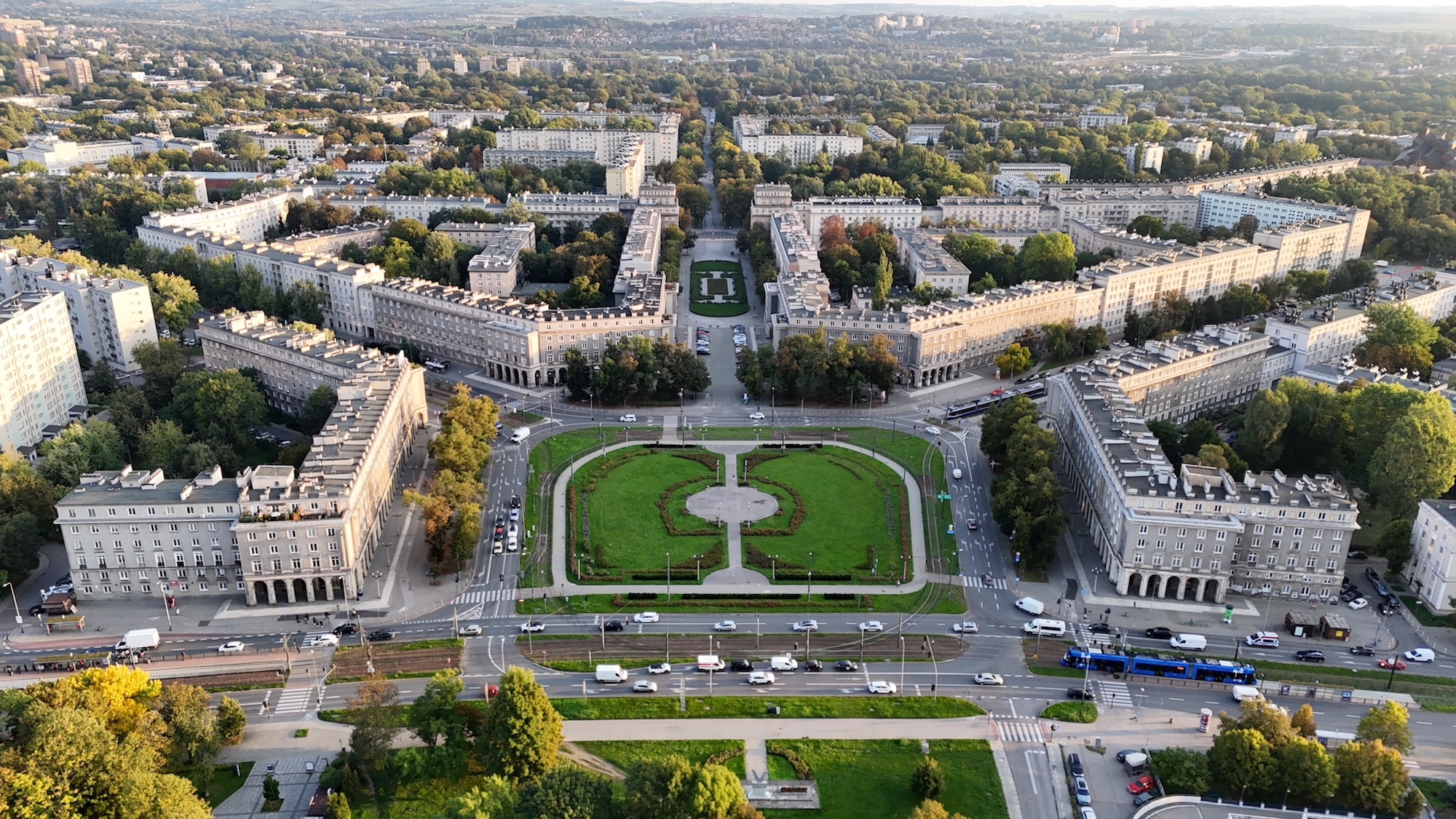Plac Centralny oraz otaczające go osiedla stanowią część planowanej kompozycji Nowej Huty, projektowanej m.in. przez Tadeusza Ptaszyckiego oraz Janusza i Martę Ingardenów. Zieleń (szpalery, rytm drzew, ramy widokowe, czytelne wnętrza urbanistyczne) nie jest tu dodatkiem, ale elementem architektury krajobrazu, który porządkuje przestrzeń, podkreśla osie i skale placu oraz buduje reprezentacyjny charakter centrum. Projekt zakłada odtworzenie tej logiki kompozycyjnej poprzez nasadzenia dużych (dorosłych) drzew w układzie zgodnym z historycznym zamysłem na podstawie kwerendy archiwalnej i dokumentów planistyczno-konserwatorskich.