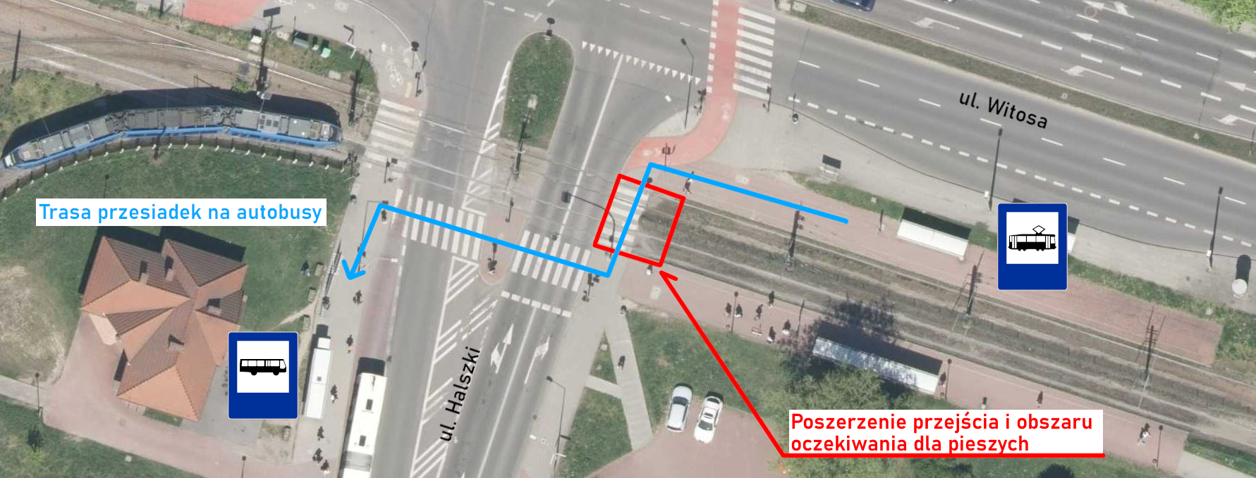 Projekt poszerzy przejście dla pieszych i powierzchnię oczekiwania dla pieszych - co poprawi wygodę i bezpieczeństwo pasażerów.