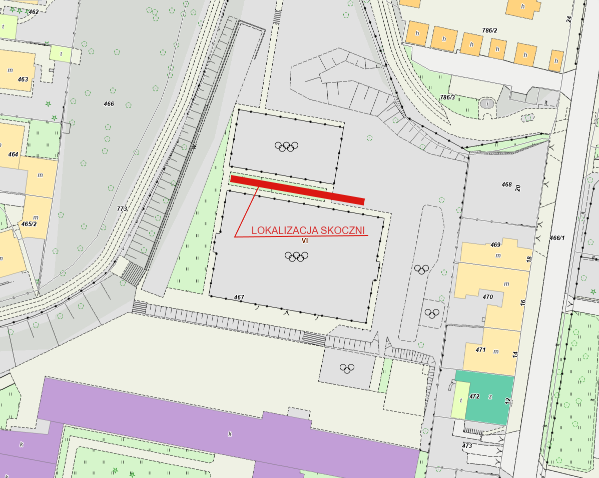 Główna lokalizacja: teren Szkoły Podstawowej nr 93, dz. nr 467 obr. K-2
