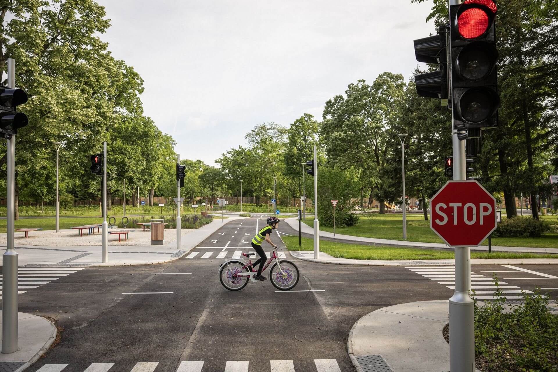 Wymiar edukacyjny projektu opiera się na stworzeniu miniaturowego układu komunikacyjnego z pionowym i poziomym oznakowaniem drogowym. Będzie to miejsce, gdzie najmłodsi, pod okiem rodziców, w praktyce poznają zasady pierwszeństwa, znaczenie znaków oraz kulturę współdzielenia drogi z pieszymi. Taka forma nauki przez zabawę buduje u dzieci poprawne nawyki komunikacyjne, przygotowując je do egzaminu na kartę rowerową i bezpiecznego poruszania się po prawdziwych ulicach Krakowa.