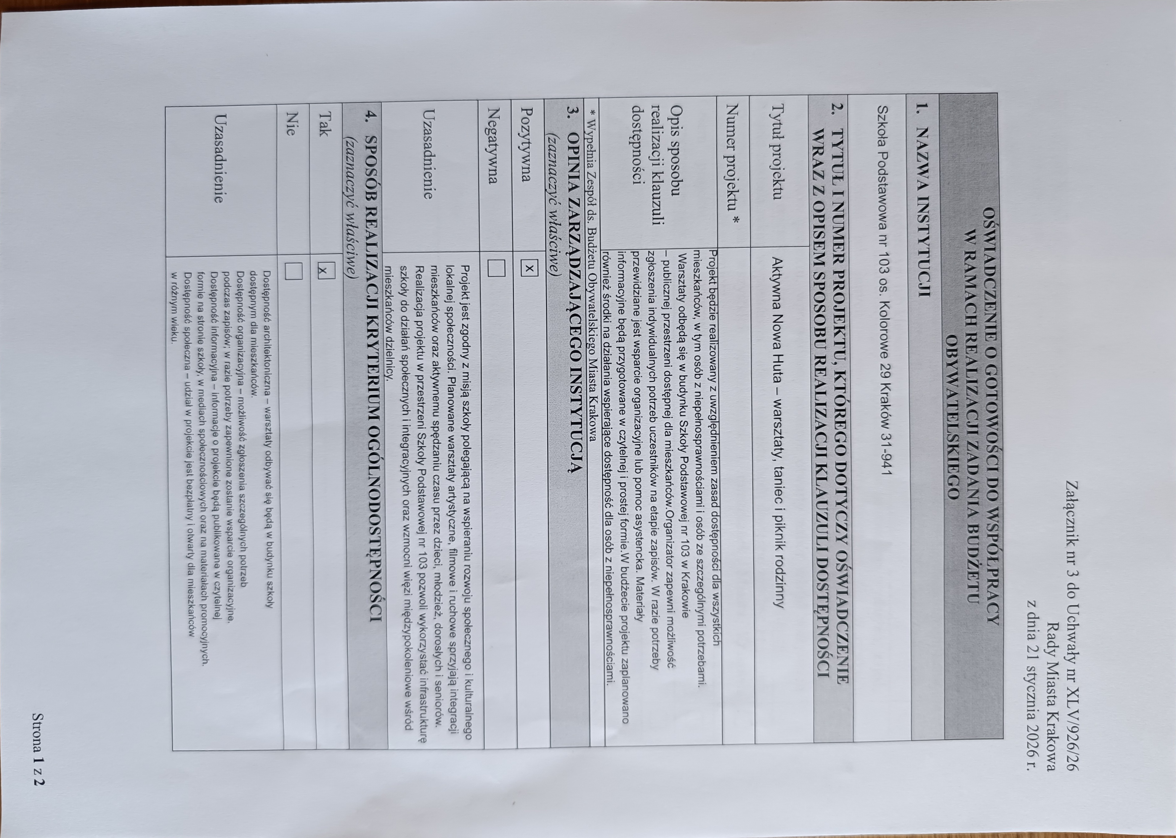Edycja Budżet Obywatelski 2026 Projekt lokalny - Dzielnica XVIII Realizacja projektu odbywać się będzie w przestrzeni ogólnodostępnej.