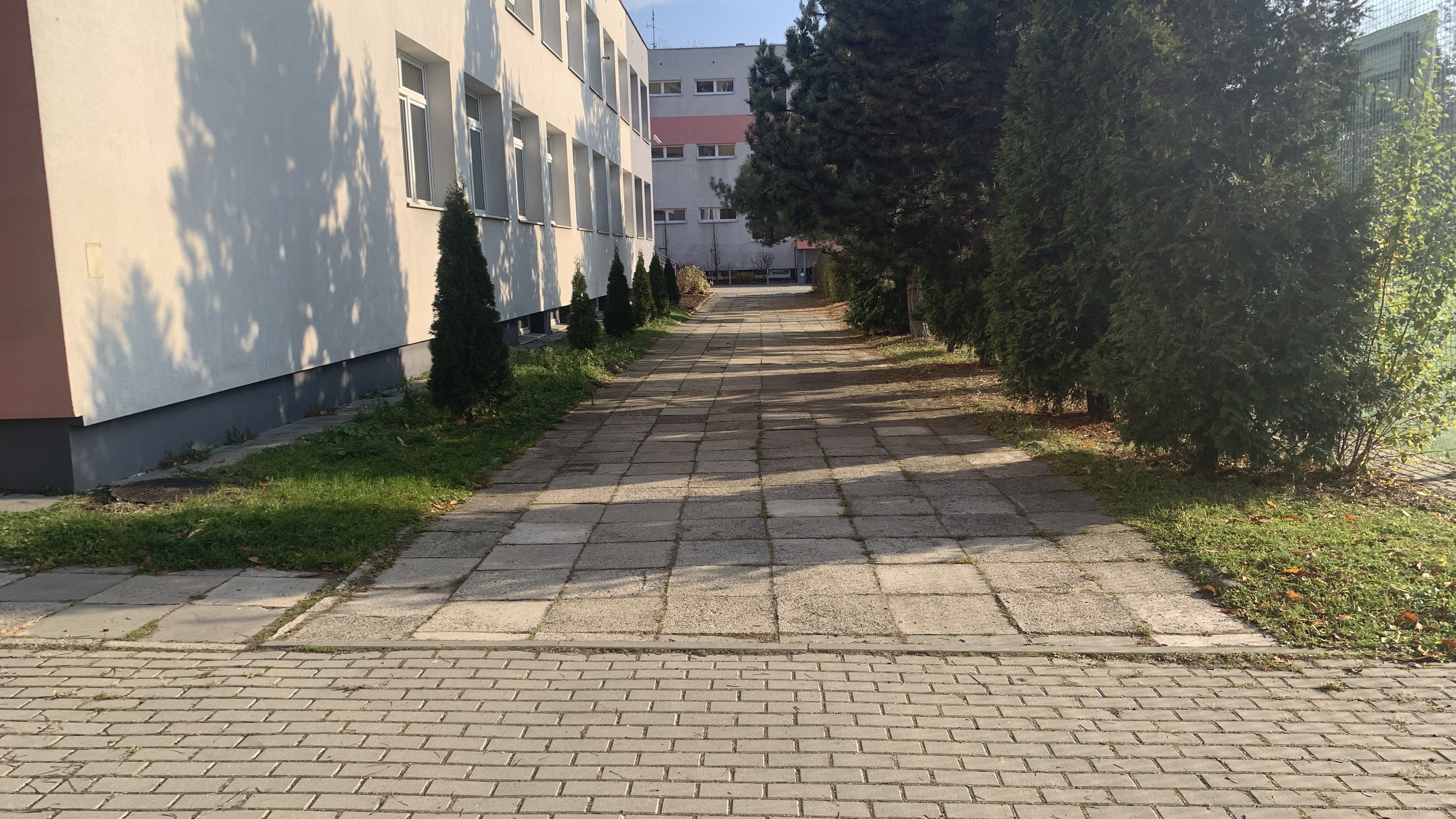 - zwężenie chodnika pomiędzy budynkiem szkoły, a furtką od strony wieżowców przy ulicy Sanockiej