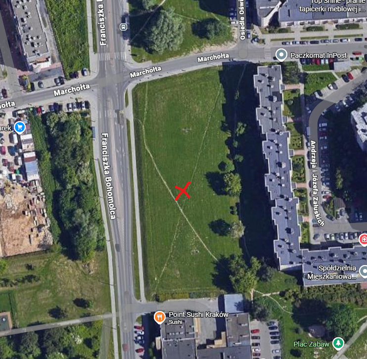 Główna lokalizacja: Dawne boisko przy os. Oświecenia - obok bloku Oświecenia 45