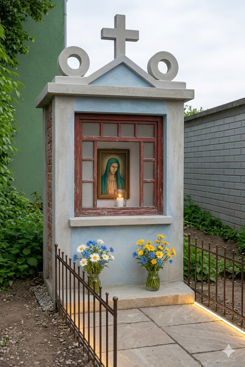 Wzrost bezpieczeństwa i dostępności (Inkluzywność): Brak utwardzonego dojścia sprawia, że obecnie kapliczka jest niedostępna dla osób starszych, poruszających się na wózkach inwalidzkich, rodziców z wózkami dziecięcymi czy osób o ograniczonej mobilności, zwłaszcza w dni deszczowe. Utworzenie bezpiecznej ścieżki wyeliminuje te bariery architektoniczne. Dodatkowo, montaż delikatnego, nastrojowego oświetlenia LED zwiększy widoczność obiektu i poczucie bezpieczeństwa w jego otoczeniu po zmroku, eliminując miejsca zaciemnione i sprzyjające wandalizmowi.