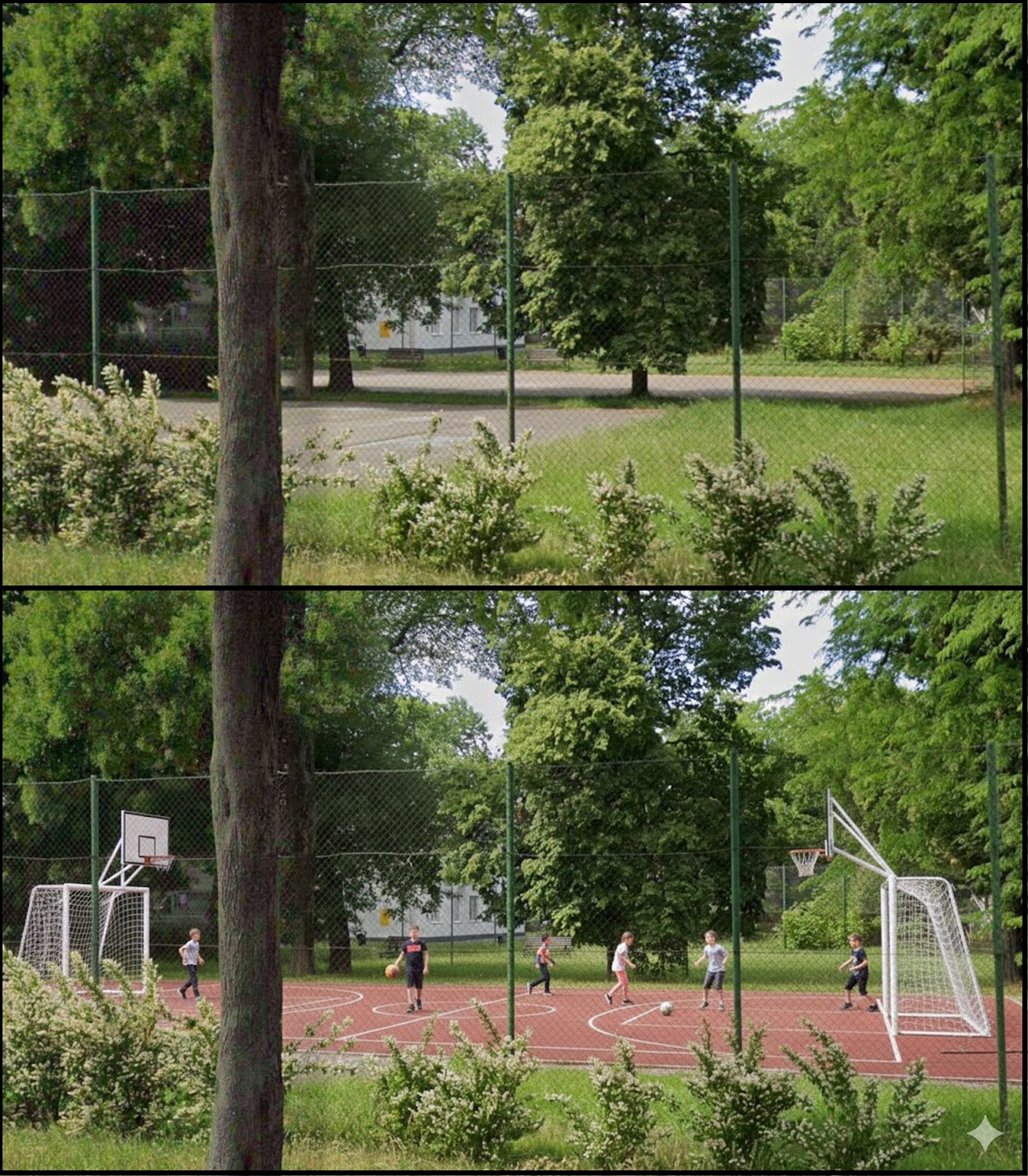 Modernizacja starego boiska poprzez wymianę nawierzchni na bezpieczną nawierzchnię poliuretanową oraz zamontowanie nowych bramek do gry w piłkę nożną wraz z koszami do gry w koszykówkę. Opcjonalnie zamontowane zostaną piłkochwyty w zależności od dost