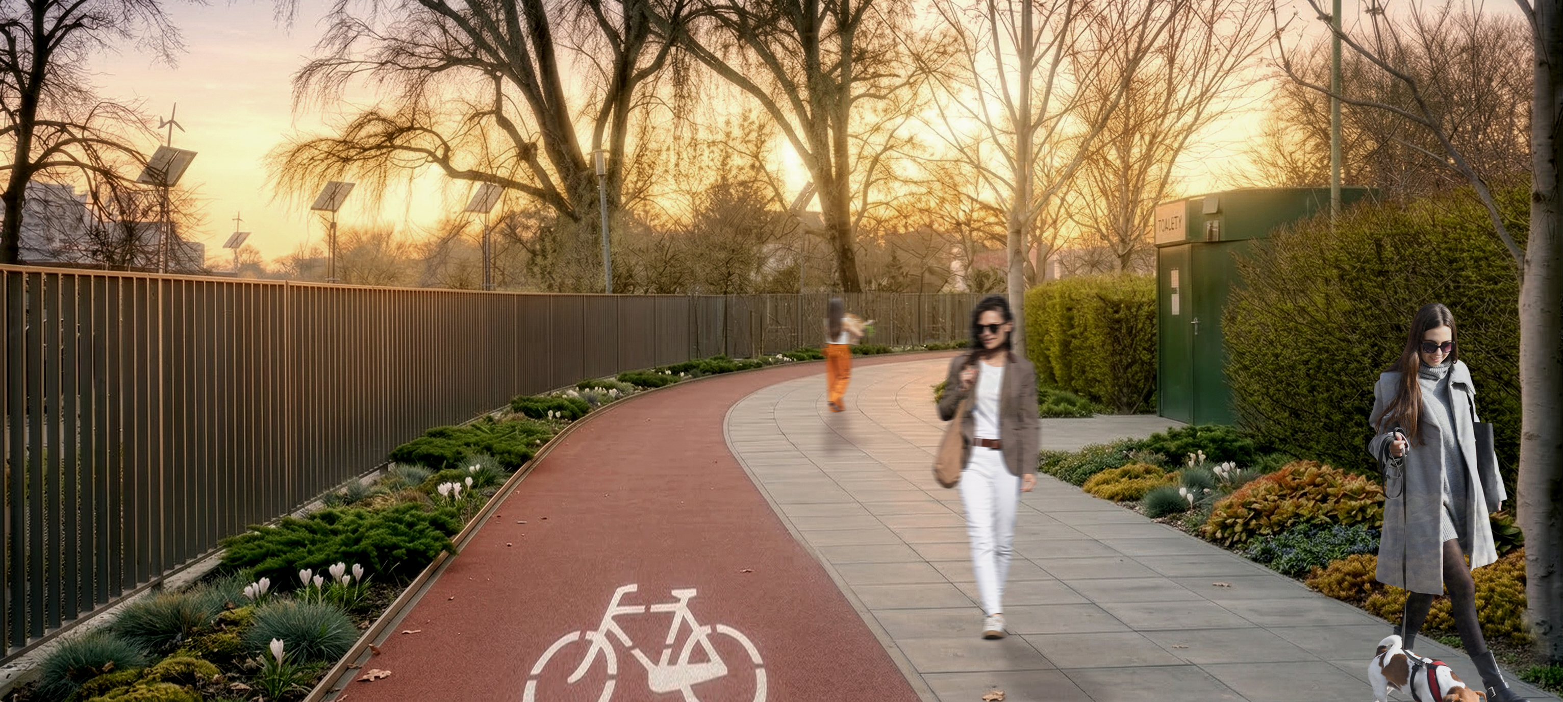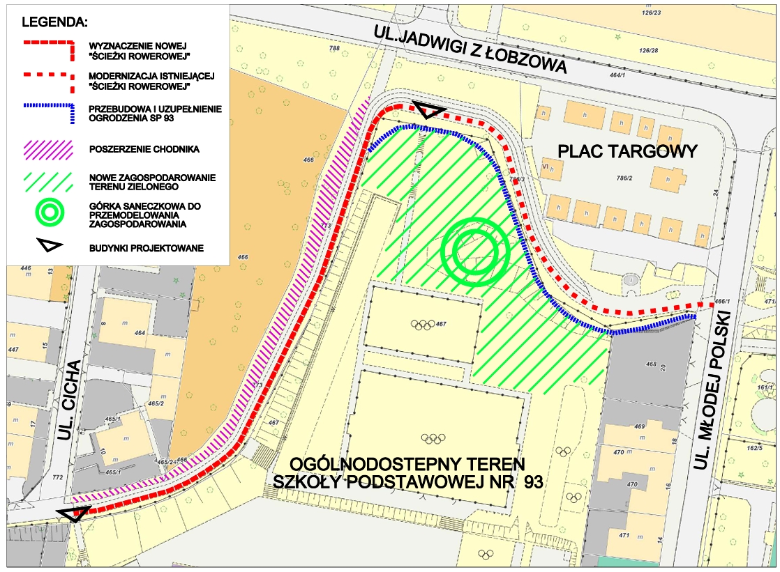 3. Modernizacja i poszerzenie istniejącej ciągu pieszego oraz poprawienie separacji ruchu pieszego i rowerowego w rejonie ul. Młodej Polski. Nowe zagospodarowanie terenu zielonego Szkoły Podstawowej nr 93 i włączenie go do parku.