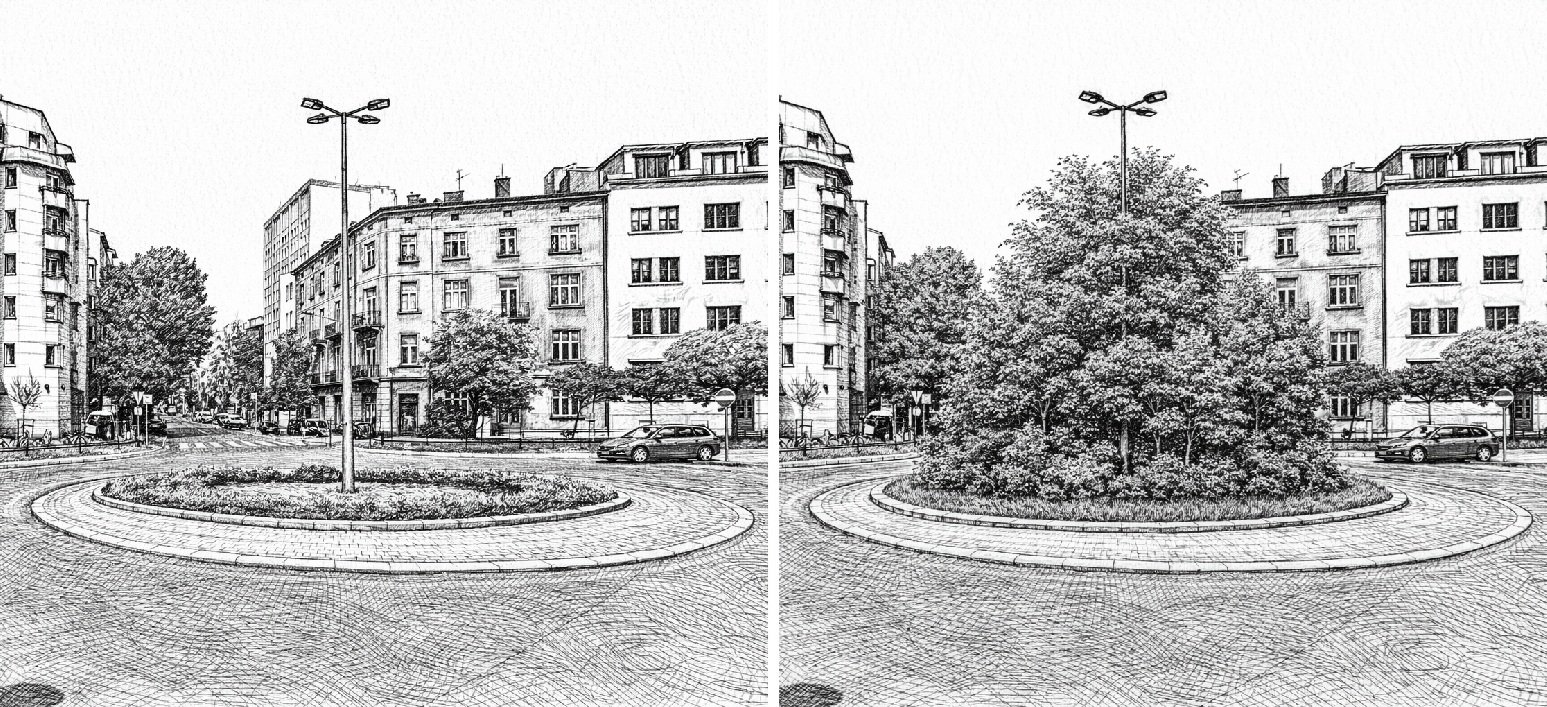 Dodatkowo realizacja projektu poprawi estetykę przestrzeni publicznej. Obecne trawniki na wyspach rond mają ograniczoną wartość przyrodniczą, natomiast przekształcenie ich w niewielkie ekosystemy leśne pozwoli stworzyć atrakcyjny wizualnie i trwały element krajobrazu miejskiego.