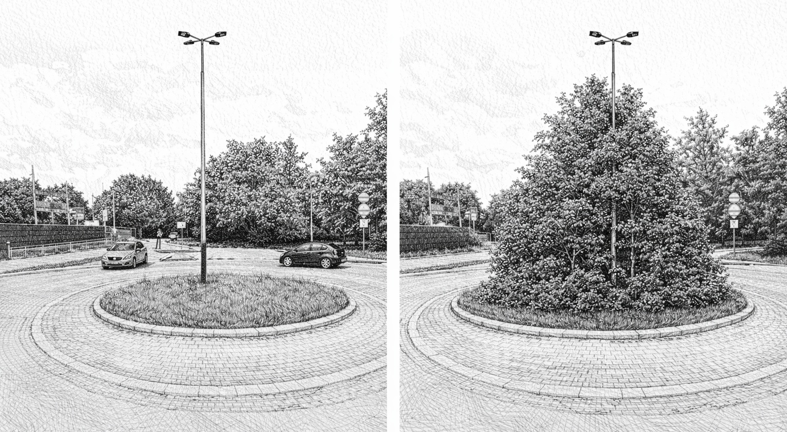 Projekt zakłada utworzenie dwóch lasów kieszonkowych metodą Miyawaki, polegającą na gęstym sadzeniu rodzimych gatunków drzew i krzewów, tworząc szybkorosnące, bioróżnorodne i trwałe minilasy. Lasy planowane są na zielonych wyspach małych rond.