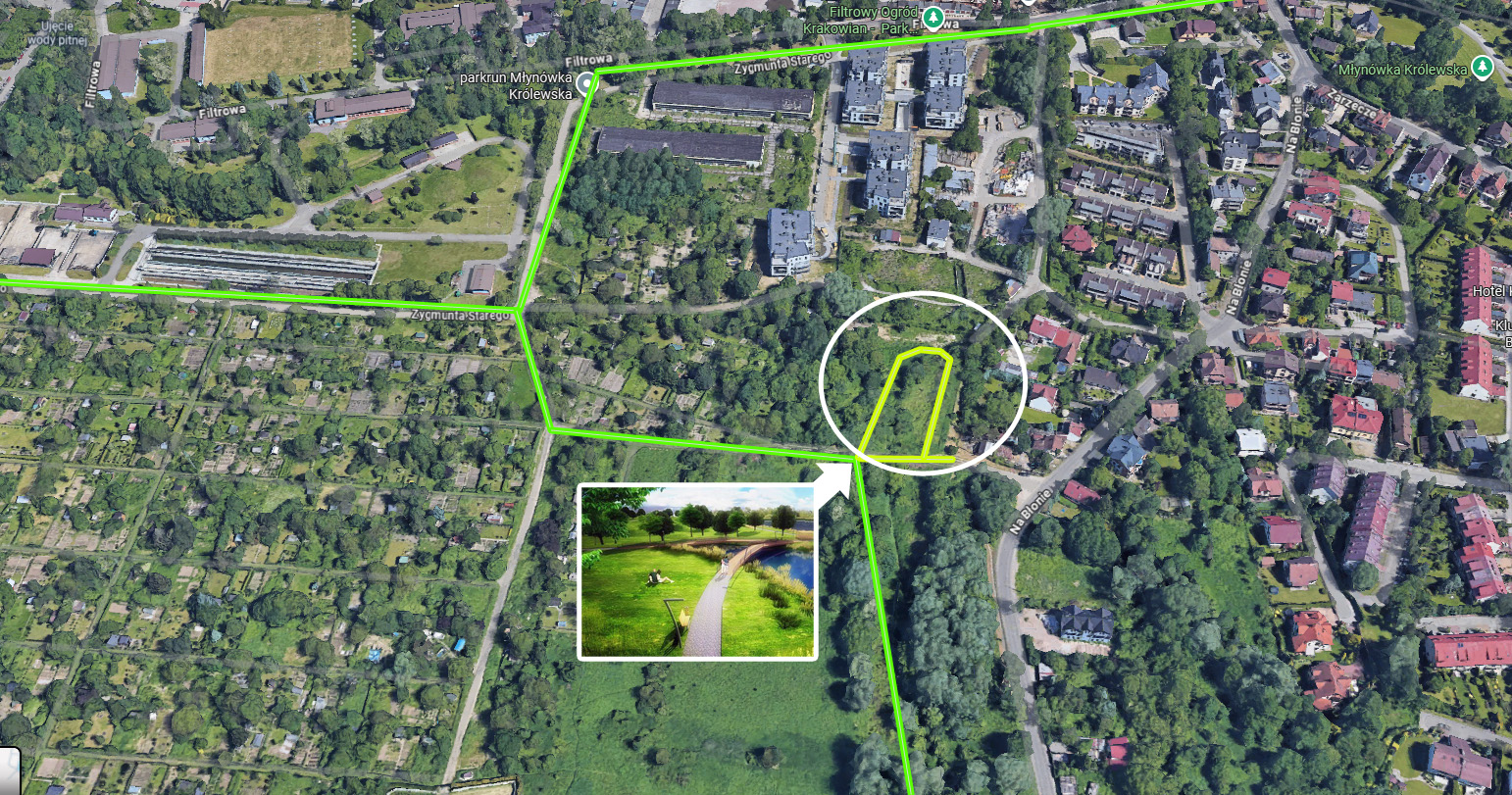 | budowa ścieżki i parku | * budowa ścieżki na działce 141/13 obr. K-1 Krowodrza łączącej nowe ścieżki nad kanałem z istniejącą drogą dojazdową do składu budowlanego pod warunkiem pozytywnej weryfikacji stanu prawnego działki. * pozostała kwota (lub całość w przypadku braku możliwości budowy ścieżki) - przeznaczona na budowę dalszych etapów parku u zbiegu ulic Filtrowej i Zygmunta Starego (na działce 325 i 325 obr. K-1 Krowodrza) | 346 433,11 PLN |